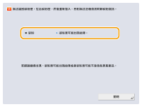 按 <略過錯誤>,然後繼續列印。但是,無法註冊的資料將不會正確列印。如需分割列印的詳細資訊,請參閱列印。