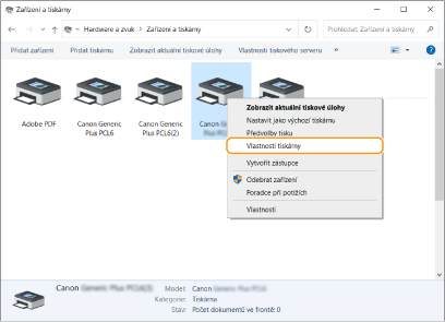 Pravým tlačítkem myši klikněte na ikonu stroje a poté klikněte na [Vlastnosti tiskárny].