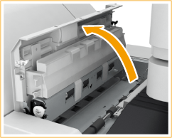 Kontrollér, om papiret sidder fastklemt i leveringsenheden i finishersiden.