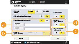 For at kryptere kommunikation ved hjælp af TLS ved modtagelse af e-mails og I-faxer med SMTP-serveren skal du trykke på <Altid TLS> eller <Til>. Hvis du ikke vil modtage andre data end krypterede data, skal du vælge <Altid TLS>.