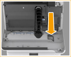 Schuif de tonercartridge met het platte oppervlak omlaag zo ver mogelijk naar binnen.