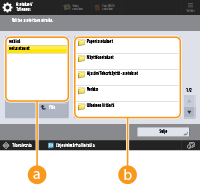 (Asetukset/Tallennus), niin <Asetukset/Tallennus>-näyttö avautuu. Paina ensin tätä painiketta, kun haluat tehdä muutoksia eri asetuksiin, kuten paperiasetuksiin, näyttöasetuksiin ja verkkoasetuksiin. Tässä ikkunassa voit myös tallentaa vastaanottajia, kuten sähköpostiosoitteita ja faksinumeroita.