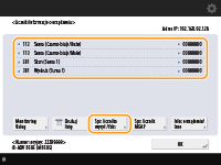 <Spr. Konfigur. Urządzenia>, można sprawdzić zainstalowane w urządzeniu wyposażenie opcjonalne oraz wersję układu zabezpieczeń dotyczącego szyfrowania danych na nośniku pamięci.Szczegółowych informacji na temat stanu liczników może udzielić sprzedawca lub przedstawiciel serwisu.
