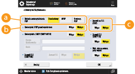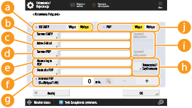 Aby wysyłać zeskanowane dokumenty bezpośrednio za pośrednictwem funkcji e-mail/I-faks bez korzystania z komputera, należy skonfigurować ustawienia komunikacji, takie jak serwer pocztowy, metody uwierzytelniania itd. Standardowo, serwer SMTP jest wykorzystywany do wysyłania, natomiast serwer SMTP lub POP3 do odbierania. Możesz ustawić kodowanie i inne parametry. Aby uzyskać więcej informacji na temat niezbędnych ustawień, należy skontaktować się z dostawcą usług internetowych lub administratorem sieci.