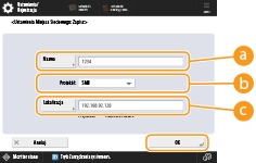 <Lokalizacja> jest wyświetlane, jeżeli wybierzesz <SMB> oraz <Nazwa hosta> jest wyświetlane, jeżeli wybierzesz <WebDAV> dla ustawień protokołu.