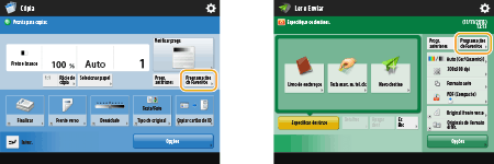 É possível alterar os botões de programação apresentados nos ecrãs das funções básicas (para operações de cópia, envio de faxes e leitura). Também é possível apresentar um ecrã das funções básicas diferente e personalizado para cada utilizador com sessão iniciada.