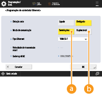 Selecione <10BASE-T>, <100BASE-TX> ou <1000BASE-T> em <Tipo Ethernet>.