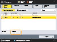(Стоп), когда отображается экран основных функций копирования, задание копирования приостанавливается и на дисплее отображаются сообщение <<Стоп>Выбер. задание на копир., которое необх. отменить.> и список заданий копирования. Выберите в списке задание копирования, которое нужно отменить, и нажмите кнопку <Отмена>.Если вы выполнили вход с использованием управления аутентификацией для личных пространств и вышли, нажав