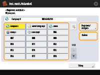 Om du vill redigera inställningarna för en snabbvalsknapp, tryck på <Registrera/redigera>. För information om hur du ändrar inställningarna, se steg 7 i Registrera mottagare i adressboken. Tryck på <OK> när du slutför redigeringen.