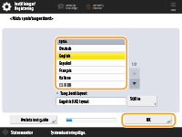 Tryck på <Växla språk/tangentbord>, välj ett språk i listan och tryck på <OK>.