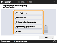 Om <Snabbknapp Inst./Registr.> inte visas på skärmen <Hem> ska du trycka på  <Inställningar för hemadministration> <Begränsa funktionsdisplay>  <Ställ in> och ställa in att <Snabbknapp Inst./Registr.> ska visas.