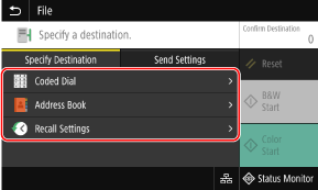 On the [Specify Destination] tab, specify the destination. Specifying Destinations