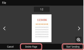If there are pages you do not want to send, open the page and press [Delete Page].