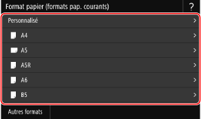 Appuyez sur [Autres formats], et sélectionnez le format de papier dans la liste affichée.
