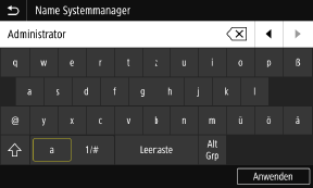 Sie können die Zeichen auch über eine handelsübliche USB-Tastatur eingeben, die an das Gerät angeschlossen ist.