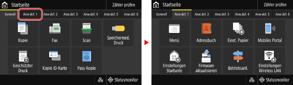 Wenn Sie auf eine Registerkarte tippen, wird der Bildschirm für die ausgewählte Registerkarte angezeigt.