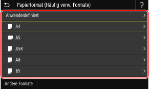 Drücken Sie [Andere Formate], und wählen Sie das Papierformat aus der angezeigten Liste.