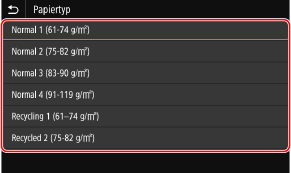 Wählen Sie den Typ des in der Papierkassette eingelegten Papiers.