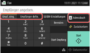 Geben Sie das Ziel auf der Registerkarte [Empf. eing.], der Registerkarte [Empfänger defin.] oder über [Adressbuch] an.