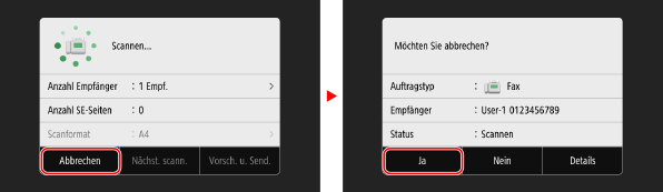 Sie können den Versand eines Faxes abbrechen, indem Sie den Anweisungen auf dem Bildschirm folgen.