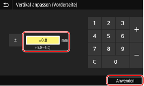 Geben Sie den Justagewert ein, und drücken Sie [Anwenden].