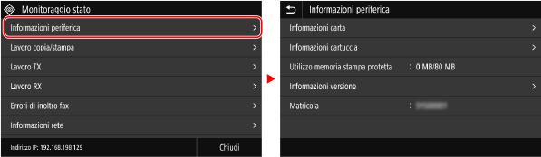 Quando si tocca il nome o il pulsante di una voce, è possibile selezionare la voce. Viene visualizzata la schermata selezionata oppure viene eseguita la funzione selezionata.