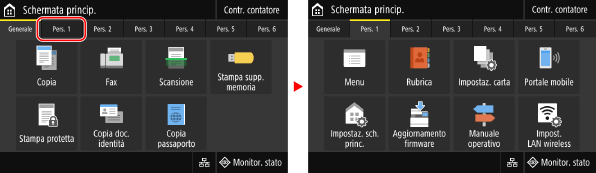Quando si tocca una scheda, viene visualizzata la schermata della scheda selezionata.