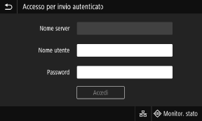 Se è stato impostato l’invio autenticato (autenticazione del server LDAP), quando si eseguono operazioni di scansione e fax viene visualizzata la schermata di accesso per l’invio autenticato. Immettere il nome utente e la password gestiti con il server LDAP per accedere.