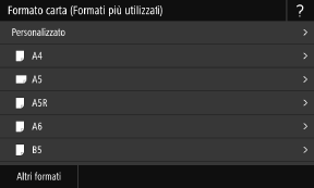 Premere [Altri formati] e selezionare il formato carta dall’elenco visualizzato.
