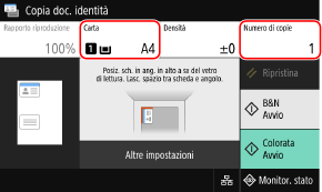 Sul pannello operativo, premere [Copia doc. identità] nella schermata [Schermata princip.]. Schermata [Schermata princip.]