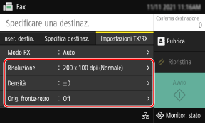 Specificare la destinazione nella scheda [Inser. destin.], nella scheda [Specifica destinaz.] o in [Rubrica].