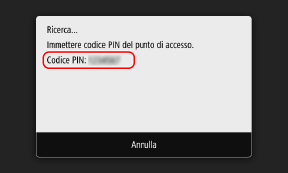 Una volta visualizzata questa schermata, occorre registrare il codice PIN WPS nel router della LAN wireless entro 10 minuti.