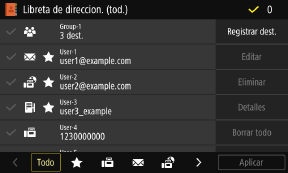 Para mostrar todos los destinos registrados en la Libreta de direcciones, seleccione [Todo].