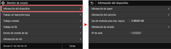 Si toca un nombre de elemento o botón, puede seleccionar el elemento. Aparece la pantalla seleccionada o se realiza la función seleccionada.