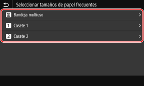 Aparece la pantalla [Seleccionar tamaños de papel frecuentes].