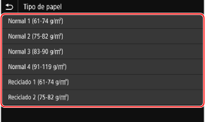 Seleccione el tipo de papel que desea registrar.