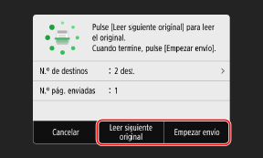 Si desea seguir escaneando originales, colóquelos sobre el cristal de copia y pulse [Leer siguiente original].
