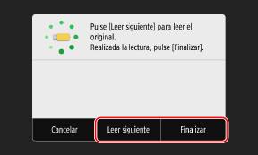 Si desea seguir escaneando originales, colóquelos sobre el cristal de copia y pulse [Leer siguiente].