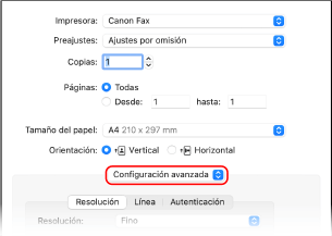 2 | En el menú emergente de opciones de impresión, seleccione [Configuración avanzada]. Si no aparecen las opciones de impresión, haga clic en [Mostrar detalles] en la parte inferior de la pantalla. |