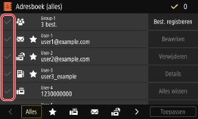 Om de informatie van een bestemming te bekijken, selecteert u het selectievakje van die bestemming en drukt u op [Details].