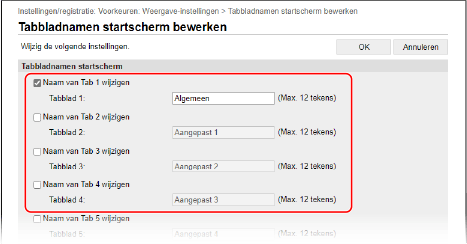 Het scherm [Tabbladnamen startscherm bewerken] verschijnt.