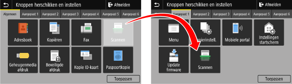 U kunt de weergave-volgorde van de knoppen op het scherm [Start] veranderen en knoppen naar andere tabbladen verplaatsen.