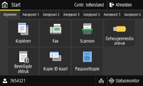 ![]() | [Instellingen startscherm] Voeg sneltoetsen toe aan het scherm [Start], en kies een andere weergave-volgorde voor de knoppen. Het scherm [Start] aanpassen | |