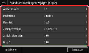 Selecteer de instel-items die u wilt wijzigen, en wijzig de standaardinstellingen.