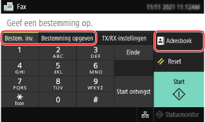 Bestemmingen opgevenVoer het faxnummer in met behulp van de numerieke toetsen, of selecteer een geregistreerde bestemming om een telefoongesprek te voeren.