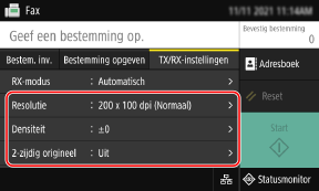 Geef de bestemming op op het tabblad [Bestem. inv.], tabblad [Bestemming opgeven] of [Adresboek].
