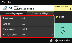 Controleer of de bestemming klopt en druk dan op [Scannen starten].