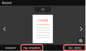 Als u een bepaalde pagina niet wilt verzenden, ga dan naar die pagina en druk op [Pag. verwijderen].