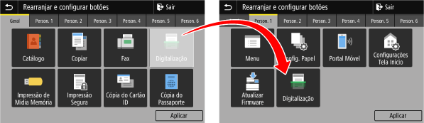 Aparece o ecrã [Rearranjar e configurar botões].