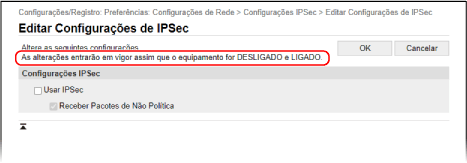 Dependendo do item, pode ser necessário reiniciar a máquina para aplicar as definições. Se for necessário reiniciar, é apresentada uma mensagem na parte superior do ecrã.